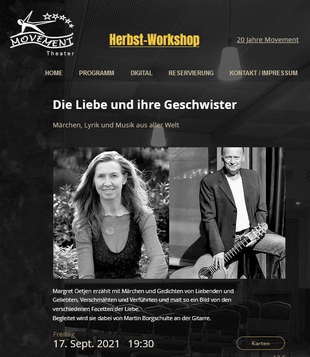 Minden Bielefelder Nachtansichten 2010 - St. Jodokus Kirche 24.04.2010 - 21.15 h Textmeditation und Musik „Bilder von Jesus” (CityKloster, Bielefeld) - Martin Borgschulte, „gitarristische Intermezzi” Unternehmer unter sich Showact / Musiker des Abends beim Unternehmertreffen in der Eventlocation Kunstleben Berlin 14.04.2010, 20:00 h cook'n'art - Dezember 2009 ... da gehör´ ich zur Nachspeise 08.12.2009 - 18:00 h / Bültmannshof Bielefeldd Der kleine Prinz von Antoine de Saint-Exupéry