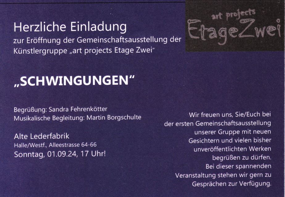 In Dankbarkeit an M.C. Privater Termin Freitag, 15. 09. 2023 - 18:00 h Finissage 14:00 h bis 16:00 h
